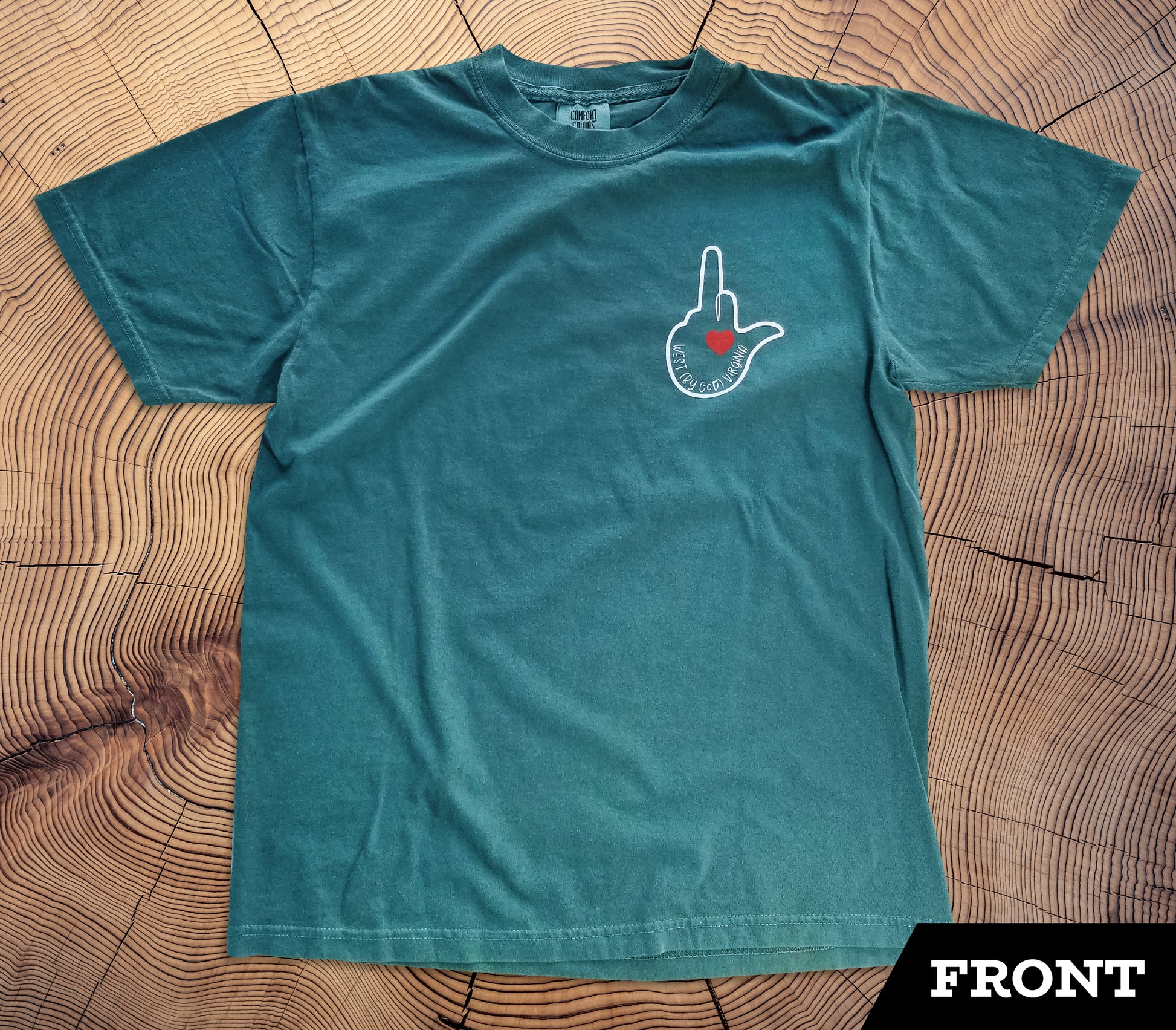 We chose this brand because these shirts are made of USA cotton; use 50% less water than traditional pigment dye processes on pigment dye and color blast garments; and through Gildan’s Community Investment Program, Comfort Colors supports education, the environment, humanitarian aid and active living. Also, it's Tony's, our t-shirt printer, favorite shirt.